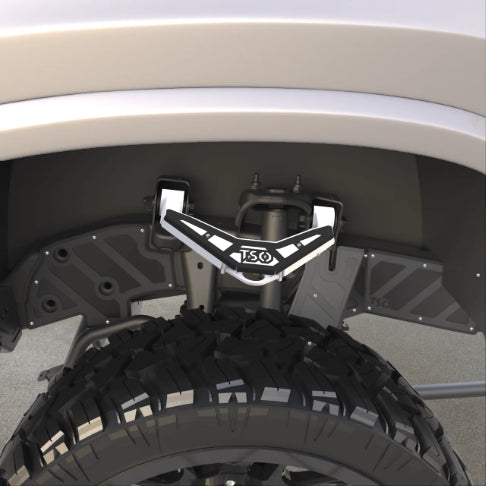 Us: Engineered clearance directly into the control arm. True bolt-on installation. No cutting. No fab work. No regrets.