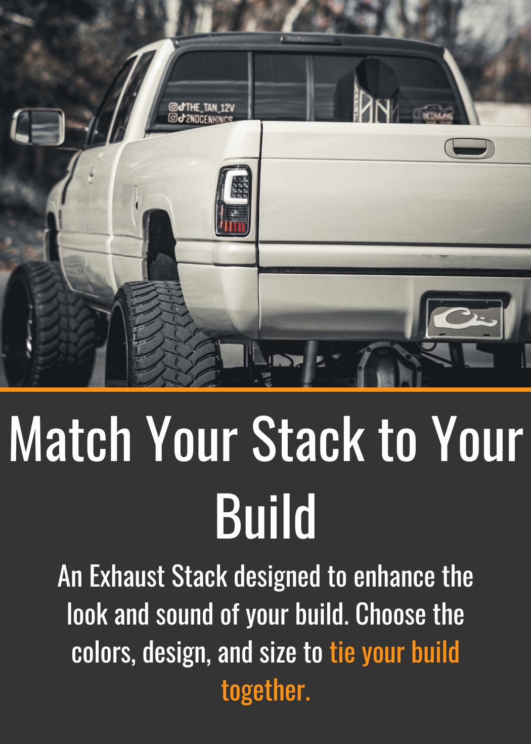 - Look under your truck to get a rough idea of where the stack needs to sit. The stack needs to sit in line with your exhaust. This makes for a quicker, fuss-free installation.
