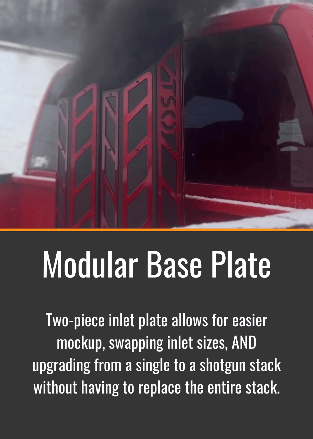 - Two Piece, Modular Baseplate allows for easier location mockup and for expansion to Shotgun Stacks or to change inlet size without buying a new stack.