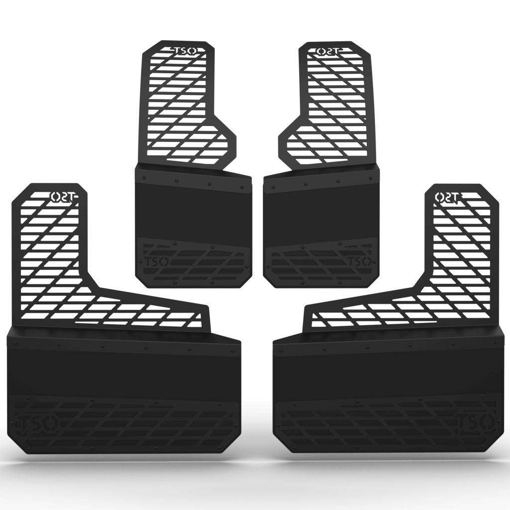 TSO Mud Flaps feature a stainless steel universal mounting bracket that is suited to your truck for installation. The bracket features four-way adjustability to fit a wide range of lift heights and wheel and tire setups!